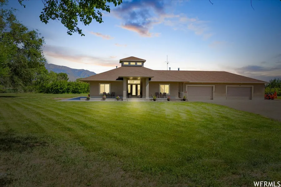 Dream location! Enjoy single level living with an open concept floor plan. This Gorgeous home is tucked away at the end of a cul-de-sac secluded away from neighbors and traffic, yet a mile from the freeway for quick trips to shopping and medical care. The location of this house is perfect with million dollar views of the mountains! Enjoy sitting in your backyard watching the breathtaking Utah sunrise over the mountains or relax on your front porch and watch the sunset. This property is a rare find with its unique design and 24 foot cupola. Home is on a 2.5 acre lot with on 2 sides that are undevelopable so your view will be around forever; also zoned for horses. Relax for hours in the master bath with jets and built-in heater. Amazing hickory wood flooring throughout the main rooms of the home as well as travertine and tile; Granite countertops and hickory cabinets in the kitchen with a new dishwasher (2019), refrigerator (2020), Jenn-Air Oven/Convection/Microwave combo (2021). Marble counters and hickory cabinets in the master and main bathroom. This home also includes a circulating pump so when you turn on the hot water it warms immediately anywhere in the house, a wrap-around patio, mature landscaping, garden beds, backup generator with automatic transfer switch, RV parking with hook up and black water dump, 36 inch doorways, walk-in closets in all the rooms, flood irrigation and water shares. This home is 2596 square feet with an attached 4+ car garage that adds an additional 1434 square feet with built in shelves. This garage has 3 garage doors that are 12 foot wide and 8 foot tall. New silent garage door openers, garage has heat and evaporative cooling as well as 220 volt power and LED lights. All appliances are included in the sale of the home as well as the 2 TVs and the gazebo in the back yard. Inspection on the home was done on 5/7/2021 to make sure everything is up to date and working. This home is move-in ready and will not disappoint. Come check out this little piece of paradise! Buyer/buyers agent to verify all info.