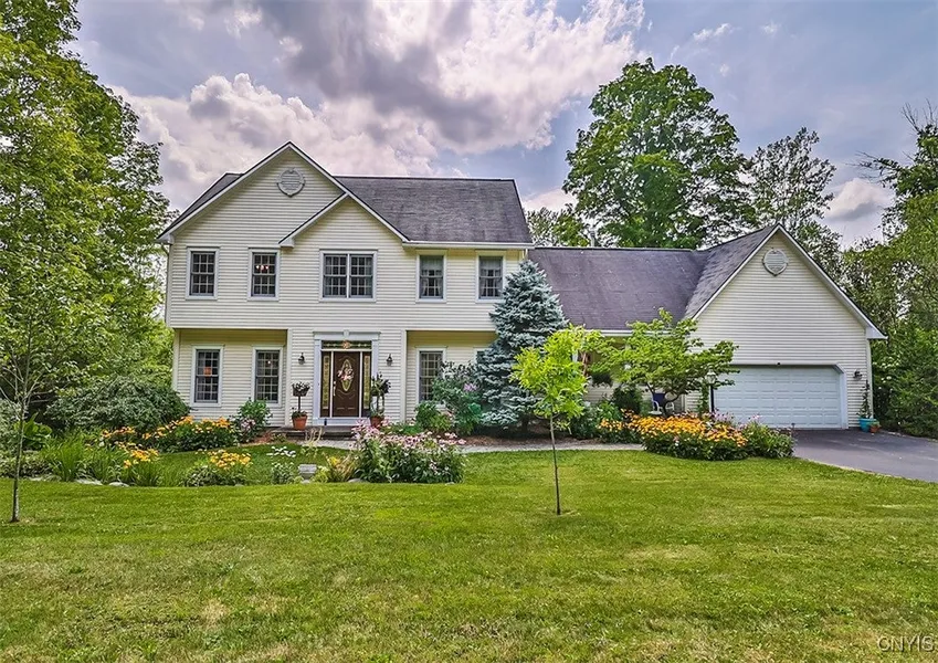 Prime location and privacy are highlights of this stately 4 Bed/2.5 Bath home, on 1.25 acres of perennial gardens and lawn, outside of Manlius’ picturesque village. Stepping inside , you’ll be greeted by a grand foyer leading to a formal living room with an adjoining library. Remodeled in 2019 by master craftsmen, the eat-in kitchen features luxurious granite countertops, plenty of storage space, plus views of the large back deck and natural surroundings. A two-car garage, first floor laundry and a half bath add to this home’s amenities. Upstairs has 4 large bedrooms, three of which feature walk-in closets! The full, walkout basement has sliding glass doors and windows. This space has already been plumbed for a bathroom, and can be finished to your liking for additional living & entertaining options. Minutes from FM schools, plus both Manlius and Cazenovia shops and businesses. Don’t miss out!