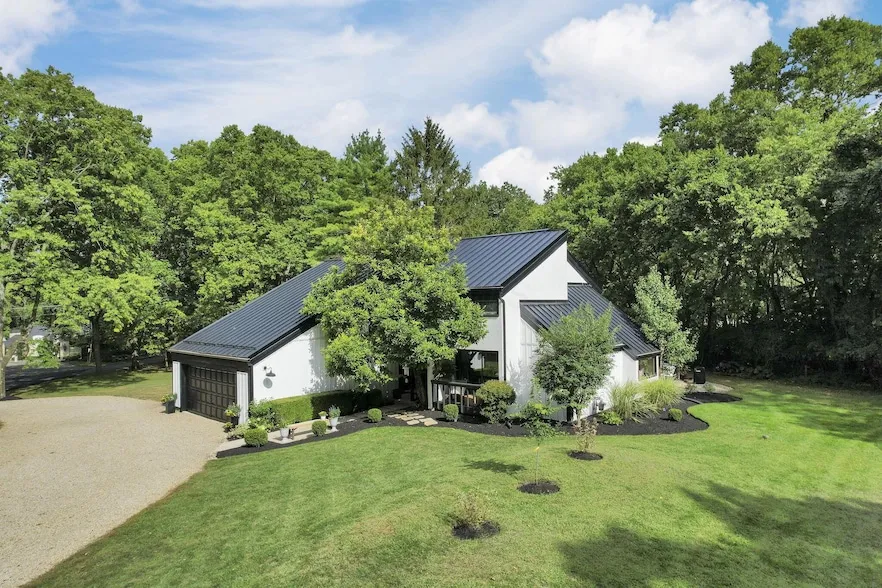 Serene 1ACRE Wooded Sanctury 1 Door away from Scioto River! Peace at THE WOODS! 3,490 SqFt of redesigned luxury, seclusion & meticulously updated. A true sanctuary, this architectural 5 Level Split offers a seamless flow where short, simple flights of steps with minimal transition offer privacy and seclusion bathed in natural light. A custom craftsmanship home featuring high ceilings, abundance of natural light, custom floating wood stairs, deluxe polished floors, outstanding new lighting and smart toilets with built-in bidets. A tongue +groove vaulted ceiling dining rm, sunlit living rm/loft, 2 story fireplace in extensive family rm, relax, play and exercise in spacious rec rm. 4th Bedrm/Den, 3 renovated baths, deluxe oversized primary ownersuite with vaulted ceiling, 2nd fireplace, generous walk-in custom closet/dressing area and new luxury custom designed bath! REDESIGNED: Entry, 1st floor den/office +laundry. Perfectly updated kitchen+quartz countertops, appliances, custom framed sunlit dinette window seat. REDESIGNED EXTERIOR: - NEW: Category 4 steel metal roof '2024', vertical siding +aluminum trim, painted stucco, gutters, downspouts, leaf guard, rebuilt-resurfaced decking. EXCEPTIONAL OUTDOOR LIVING: Stamped concrete patio, firepit, hot tub +metal roof patio gazebo nestled within beautiful mature trees, plantings +expert landscaping. Convenient smart home features - Nest thermostat +Ring camera doorbell. Quietly Tucked Away 1 door away from Scioto River. Minutes to Shopping, Restaurants, Bridge Park, North Market.