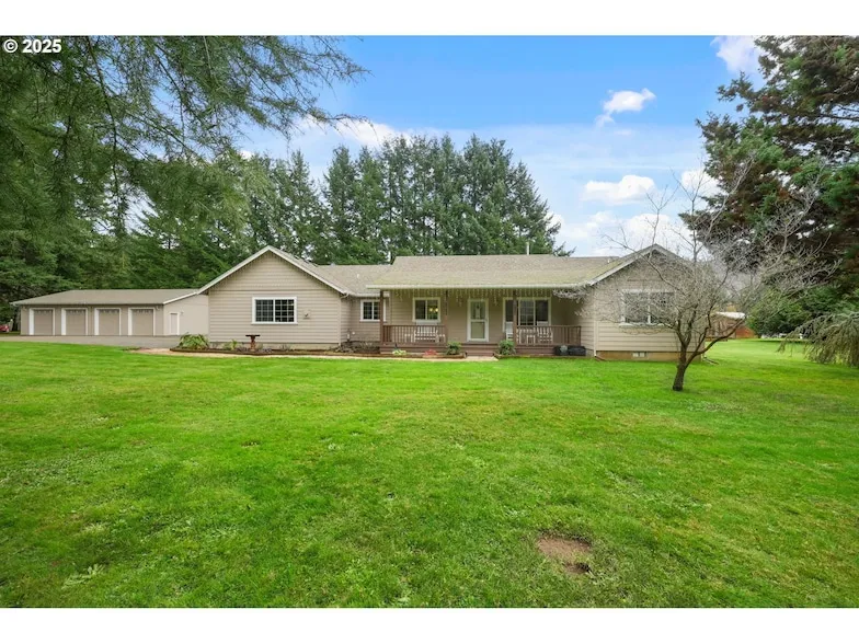 Only 15 minutes from Springfield, welcome to McKenzie Country Living where craftsmanship, comfort, and nature come together in perfect harmony on 1.85 acres of land. This beautifully designed, custom-built Craftsman home radiates pride of ownership from every angle. Bathed in natural light with walls of windows and vaulted ceilings, the open layout feels airy and expansive, offering effortless living and entertaining. The heart of the home is the cheerful kitchen and a picture window overlooking the serene property. The dining nook glows with sunlight from the bay window, while the living room s hardwood floors and wood stove create the warmest of welcomes. Step outside to relax on the oversized back patio or enjoy tranquil mornings on the covered front porch. Explore the lush, manicured grounds complete with mature trees, a garden shed, and sprinklers that keep everything vibrant. The immaculate 30' x 48' detached 4-bay shop is a rare treasure perfect for the hobbyist, collector, or anyone craving versatile space. A spacious primary suite, two additional bedrooms, thoughtful storage, and a soothing neutral palette complete this delightful single-level home. A true Walterville gem offering comfort, beauty, and a lifestyle that feels like home the moment you arrive.
