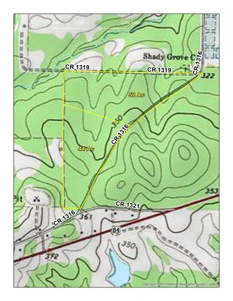 Wooded in varying age of pine plantations from 2005 and older. Mixed natural woods near south end and along creek drains. Rolling topography. Historic "Shady Grove" area. Historic forestry use and ownership.