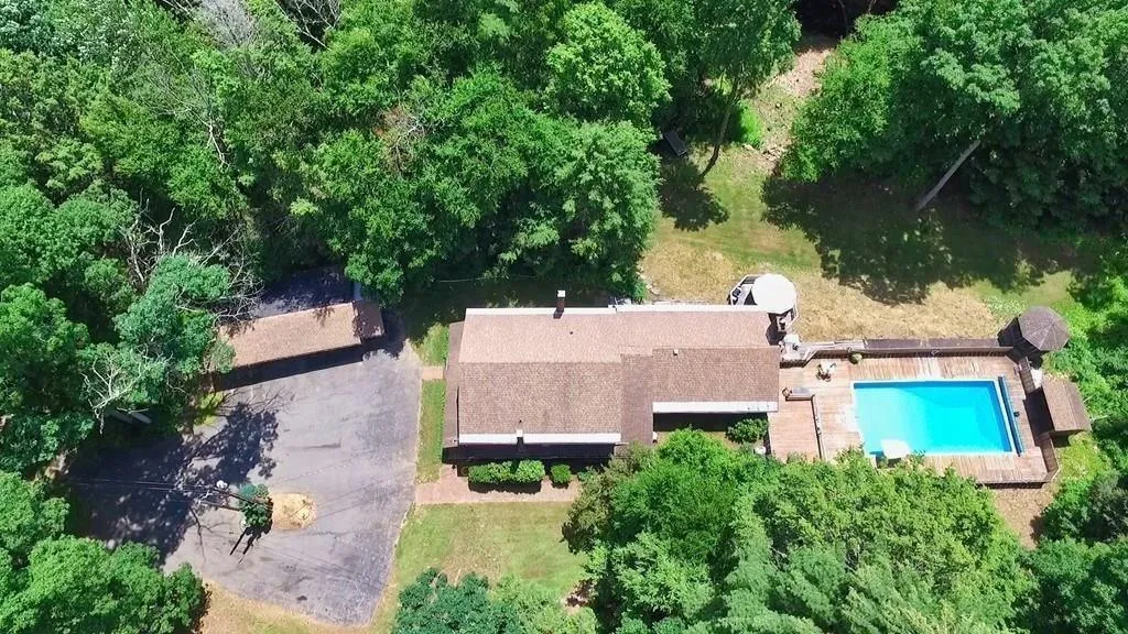 Country compound estate will appeal to privacy & nature seekers! 5 BR main house with in-law potential, separate guest house, barn, 4 stall garage, extra storage building, open field and wooded acreage. Two title 5 approved septic systems. Across from Hamilton Reservoir. Long, private gated driveway. In-law area in main home has exterior access. Super private in-ground pool with decks, patio and gazebo. The separate guest house is out of view of the main house. Many natural features highlighted the main house with multiple fireplaces, unique stone entry and wooden beamed accents. Babbling brook winds around property and ends in a small pond located behind the barn area. Bring your horses! Please schedule enough time on showings to take in all this property has to offer. Some Commercial zoned frontage along with additional lot plan design are available. Too many possibilities to list here. Preapproved buyers only