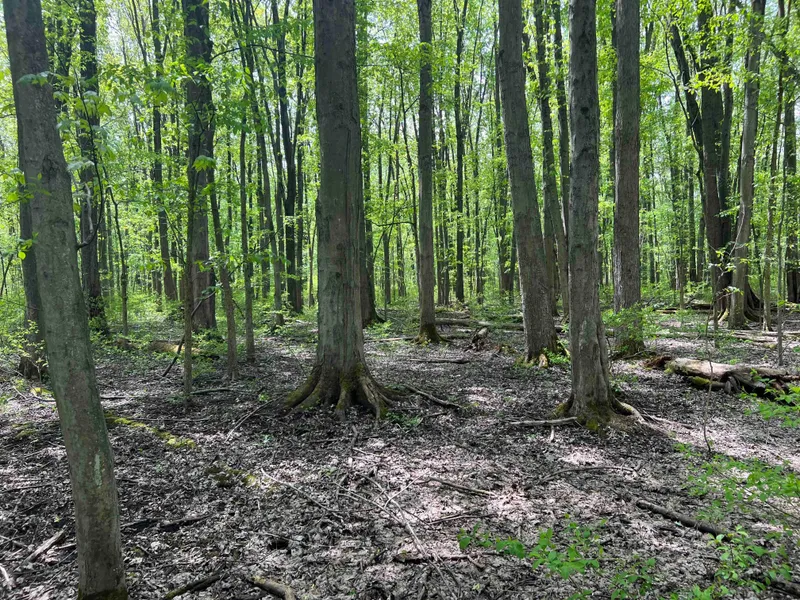 As you enter the property from Pilgrimport Road, there is an open field that is approximately 50 yards wide and 150 yards long. There is a good mature hardwood stand on the property consisting of ash, soft maple and some cherry trees. The property is near tabletop level with some very gentle elevation changes. There are a series on drainage ditches in the woods, and a good portion of the property is wetlands but is not under water and very walkable with plenty of wildlife signs and trails throughout. Great spot for hunting with no nearby houses, and lots of active farmland around the area making this property a funnel for wildlife.