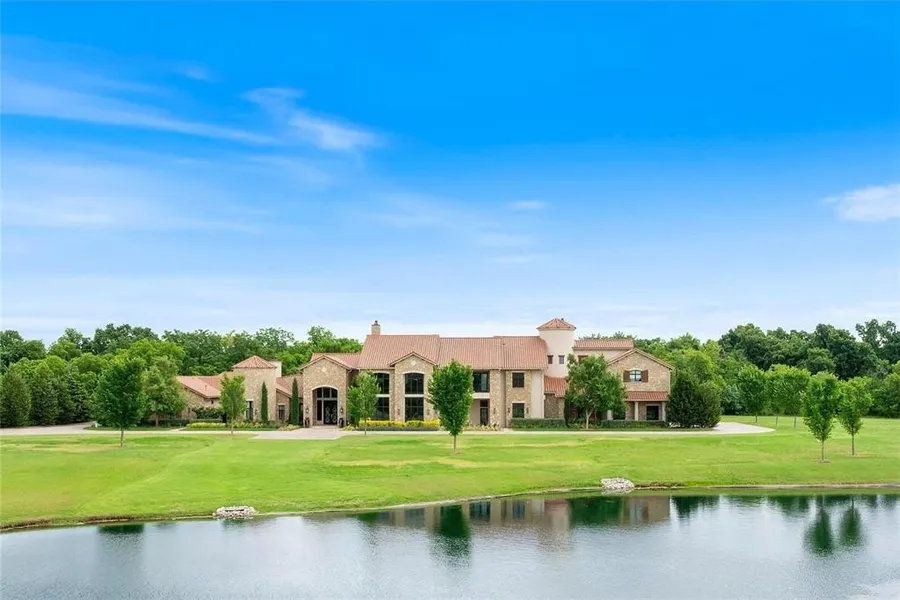 Experience the pinnacle of luxury living in this ultra-exclusive gated estate overlooking the Gaillardia Golf Course. This secluded property offers unparalleled privacy and stunning golf and water views. Access the home through a gated entrance and a scenic, tree-lined driveway, leading to a residence designed by architect Rick Brown. Outdoor kitchen with a pizza oven, and expansive living spaces perfect for entertaining. Living room boasts 23-foot ceilings, a grand stone fireplace, two-story windows with electric shades, and glass railings on the second level. The gourmet kitchen is equipped with a 60" Wolf range, three full ovens, multiple appliances, and extensive counter space, including three islands and a butlers pantry and a very cool glass wall wine cellar! The primary suite offers convenient access to a two-car garage, his and her separate primary baths with an adjoining shower, and separate closets, including a concrete safe room. Outdoor amenities include multiple living spaces, a swimming pool, a fire pit, and picturesque views of the surrounding trees, creeks, and wildlife. Additional features: Large glass walled gym with special flooring, wet bar and balcony, library/study off the primary suite with beautiful paneling and a fireplace, and an elevator. Over 1,000 square feet of unfinished space for future expansion that is not included in the sq footage. Enjoy the perfect blend of country living and city convenience, with close proximity to OKC, highways, and Edmond. Golf cart access to the country club and golf course, along with the estate's serene setting.