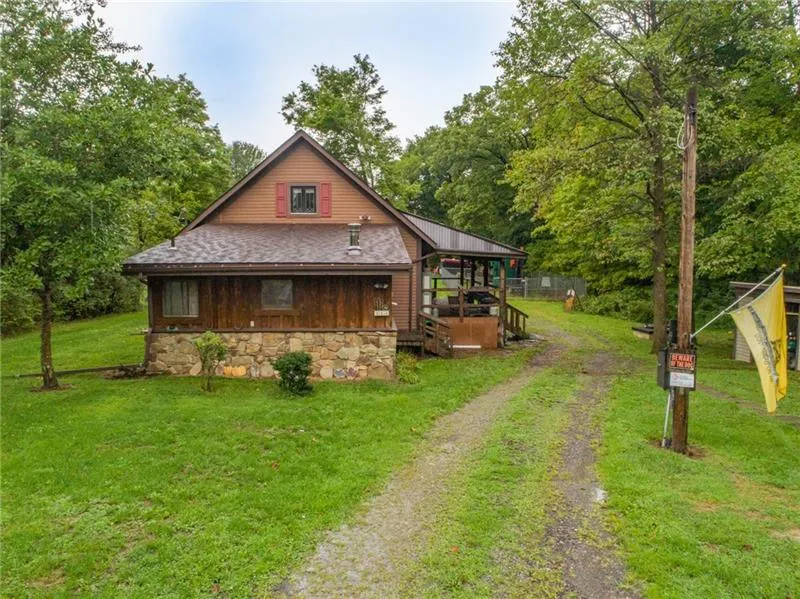 Come View This Fox Chapel School District Opportunity - 2 Bedroom 2 Bath 1 1/2 Story Home on over 1 acre. Main level has a living room, eat-in kitchen, Master Bedroom w/full bath and another full bath. Upper level is a loft bedroom w/skylight. Home has hemlock & wormy chestnut wood flooring. There is a large covered front porch and 2 sheds in the backyard. No Basement. There is a gas well on the property. Free gas.