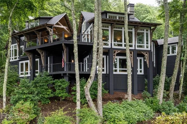 Views, Views, Views! This gorgeous Joel Newman designed custom home in Balsam Mountain Preserve features fantastic, panoramic views of the Plott Balsam Mountain Range, Sugarloaf Mountain, and the Great Smoky Mountains National Park. Nestled at 4,500' on 1.84 acres, this mountain-contemporary home features elegantly curated appointments and gorgeous pickled white pine throughout. Surrounded by conservation easement and is just steps to the hiking trail network. The primary bedroom suite features great views, gas logs, two walk-in closets, steam shower and gorgeous soaking tub with walnut finishes. Phenomenal landscaping throughout and flat, grassy areas to roam. Enjoy making memories at your personal firepit in the backyard or a glass of wine on your front porch looking at the sunset! Attached two car garage, three additional parking places, and an elevator in place. Sonos Sound System. 40W Generac Generator. A very special home with gorgeous views makes this home a must see!