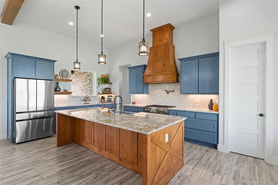 Welcome to your private slice of Texas paradise! Nestled on 12.42 sprawling acres, this stunning 4 bedroom, 3 bath home offers the perfect balance of rustic charm and upscale living. With 2,598 square feet of thoughtfully designed space, you'll find upgraded tile flooring throughout, expansive windows and an oversized 3 car garage. The gourmet kitchen complete with luxury Italian Range is a true showpiece of the home, the kitchen features a professionally inspired Bertazzoni 5-burner gas range, handcrafted in Italy. Known for its precision engineering and striking design, this high-performance range includes five burners for optimal heat distribution, heavy-duty continuous grates, and a spacious convection oven perfect for baking, roasting, and entertaining on a grand scale. Whether you’re a seasoned chef or passionate home cook, this stove offers both beauty and unmatched functionality.