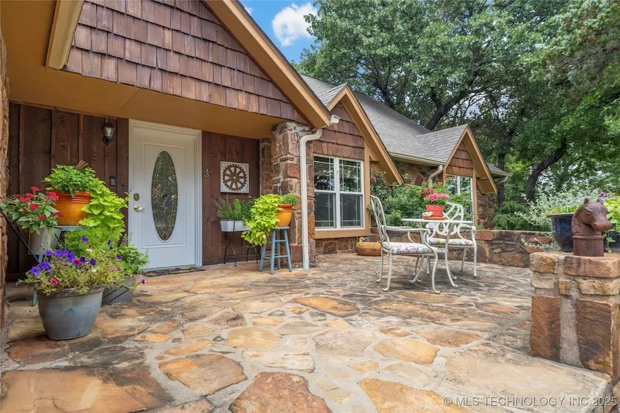 This 7.5 acre (mil) homestead is quite the Oasis! The beautiful unique home includes 4 bedrooms (c/b game room), dedicated office, 2 baths, tons of storage and 2 car garage. Updates include, custom Burnett windows throughout, granite kitchen counters, flooring is primarily tile, some laminate and carpet. The living room has a corner fireplace, built-ins and a wet bar, opens to nook/kitchen all with a view of the beautiful outdoor oasis! The outdoor oasis includes a pergola off laundry room for covering the outdoor grill, out back there's a covered sitting area to enjoy the fountain and Gunite pool that was resurfaced, and all new equipment installed in 2022. There's also an outdoor fireplace, storm shelter; AND, a whole house generator! ENJOY this serene setting for watching your animals and the natural habitat animals roam and frolic! Or create your own self sufficient homestead there s plenty of room for gardens or orchards on the fully fenced & cross fenced property with pipe fencing, including 2 barns - larger barn has 8 stalls, tack room & hay storage, smaller barn has 2 stalls both with electric and water. While you are looking around, DON'T miss the chicken coop with electric, small shed with electric AND the 30 X 5O fully insulated steel constructed shop with electric, concrete floor and (2) approximate 15 ft tall and (1) 12 ft tall overhead doors w/30 amp service for RV. Minutes to shopping and minutes to Skiatook Lake!