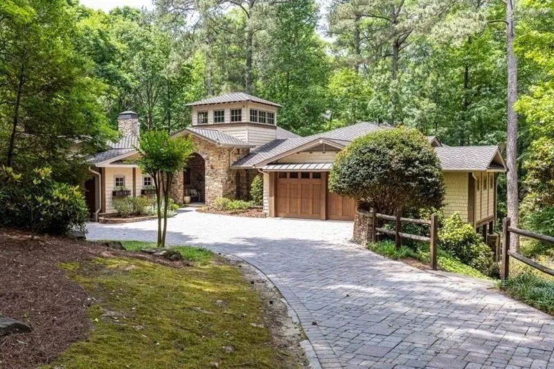 Escape to this remarkable property sitting on over an acre of land with a serene stream as your back drop. Curated to perfection this home offers an elevated lifestyle close to heart of Vinings. Walking through the front door you enter the great room with beamed ceiling, floor to ceiling stone fireplace and beautiful views of the canopy of trees that surround the property. The overside separate dining room features wood barreled ceiling and nearby butlers pantry making it perfect for family gatherings and entertaining. The Design Galleria kitchen is perfection with dining area, kitchen island, built in office, Sub-zero and wolf appliances, wet bar, separate drink drawer, farmhouse sink, stacked stone backsplach & limestone vent hood. Conveniently located of the kitchen is the mud room with ample cabinet space and sink. A peaceful Yoga-sunroom just off the kitchen offers a view of the entire property. Tranquil primary bedroom with sitting area & limestone fireplace are located on the main floor. Two additional bedrooms with tiled bathroom and a beautiful wood paneled library with fireplace are also on the main floor. The main floor opens to wrap around rear deck and Pavillion give full with views of the stream and offer an unbelievable setting for any gathering. The second level offers two additional bedrooms and two additional entertaining spaces including a large sitting area with fireplace, game room and two full bathrooms. The newly completed terrace level with half bath offers room for a gym, home office,workshop, studio etc. and has a separate entrance that opens to the stream and backyard. The home has a two car garage with artist studio and also an additional covered parking spot with a storage shed. The home and property work together to bring a harmonious way of living. Some of the property upgrades include the completed terrace level with bathroom, new lighting, new decking, kitchen upgrade and new generator.