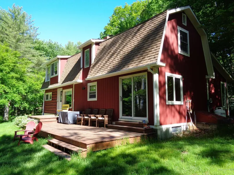 In close proximity to Graham Lake, this bright and cheery red log home is close to all that Ellsworth has to offer, yet situated in Fletchers Landing Township where taxes are wonderfully reasonable. Two bedrooms upstairs include a large master with a nice foyer/office at the landing. A downstairs bedroom is another plus with 1 and a half baths downstairs. Auto start generator is included. Listen to the sound of Archer's brook bordering this property while enjoying the spacious deck.