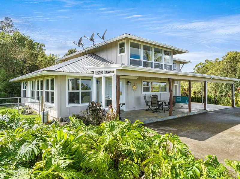 Peace and tranquility abound in this immaculately cared for residence in the hills of Paauilo. Named KA 'I'O MA KE 'ANI'ANI KU, Seeing the hawk in the reflective sky, the Hawaiian I'o hawks are often spotted! br brStep through the front door to be captivated by the soaring ceilings, eucalyptus flooring, and wide picture windows providing stunning views of the azure Pacific Ocean and manicured tropical foliage beyond. brbrThe main floor, with its open concept kitchen, living and dining rooms, also feature 2 spacious guest bedrooms and 1 bathroom. Vaulted ceilings continue to the second level, providing a large family room, office, primary bedroom with ensuite, walk-in closet, and view of Mauna Kea, plus a third guest bedroom. brbrNatural light streams into the well appointed kitchen, with its seemingly endless granite countertops, large pennisula with a combination live-edge mango and granite counter, pendant lights, pantry, and office nook. The living/dining area focuses on the breathtaking ocean views. brbrEase of parking is available in the 2-car covered carport and attached 400 sq. ft. two-car garage which includes a laundry facility, refrigerator, built-in storage, workshop, and attached garden room. The private backyard oasis highlights an outdoor shower surrounded by tropical plantings of mature flora. Fido will enjoy his enclosed dog area. brbrThe two-acre macadamia nut orchard, complete with chicken coop, is fenced. Fruiting banana, avocado, a variety of citrus, lilikoi, and white pineapple provide year-round sustainability; with mature ohia trees creating the backdrop for this picturesque residence.brbrEasily accessed on all paved roads, this property iis sold fully furnished, includes below ground power, county water, internet with fiber optics coming soon, and solar privacy gate. Offered fully furnished with an accepted offer, this property is truly unique and not easily replicated. brbrEnjoy the video!
