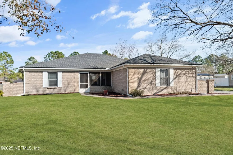 Solid, brick-veneer home with pond views features 4 bedrooms and 2 full baths in a split arrangement. This home is tucked away in a quaint, country-like subdivision with large lot sizes (rarely a turn-over) only minutes away from Jacksonville, Yulee, and Fernandina. Roof (2021), HVAC (2022), and Water Heater (2023), and new metal shed w/carport (30' wide and 25' deep) has concrete floor (2023).