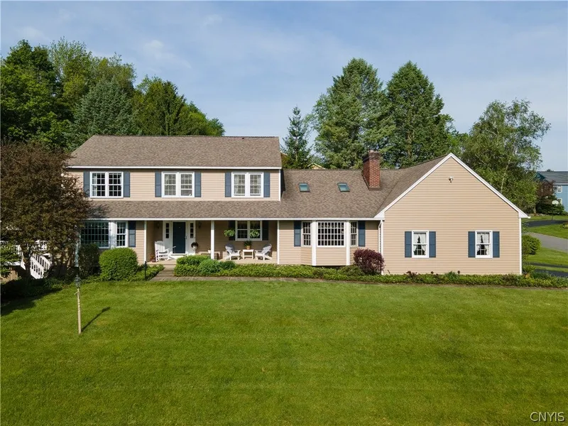 Superior counstruction found in this stunning Ruggieri built/Klepper improved home. Incredibly spacious rooms & oversized bay windows. Hardwood floors throughout most of the home. The stunning kitchen was completely remodeled by Custom Woodcraft, Munnsville. It features granite counters, glazed, off white cabinetry & a contrasting, darker wood island w/ seating & loads of storage. GE Monogram appliances include a 6 burner commercial range. Fabulous sunroom has vaulted ceiling, skylights, & a custom hutch w/ granite, wine fridge & sink. Atrium doors open to a huge, wrap around deck. A family room featuring cathedral ceiling, exposed beams, fireplace & built ins leads to the office. The mud room has closet doors that cleverly conceal the w/d & huge storage closet. A 3 car garage has room enough for a 4th smaller sized vehicle. The 2nd story has 4 bedrooms including a huge primary. The bath has new vanity, w/ quartz, jetted tub & walk in shower. 3 additional bedrooms have ample “California” closets w/ shelving. The full bath has newer quartz countertop. Full, walk out lower level has high ceilings & clean, dry space w/ tons of shelving, storage & entertainment areas throughout.