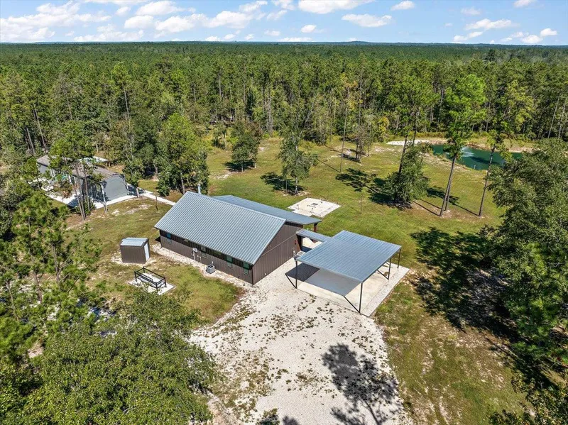 ALL INCLUSIVE ! Ready to go ranch with land, home (1650 SF), carport, guest house, barn (1600 SF), pond, fire pit, and all the trimmings, ie; furniture, equipment, tools, deer stands/feeders, fuel tank, etc. Just move in, relax, and enjoy. See photos ! Gently rolling topography over sandy type soils with scattered hardwoods and pine trees. Great shape, access, and frontage. Low traffic, yet close to SH 287. Trails, trails ! High and dry !