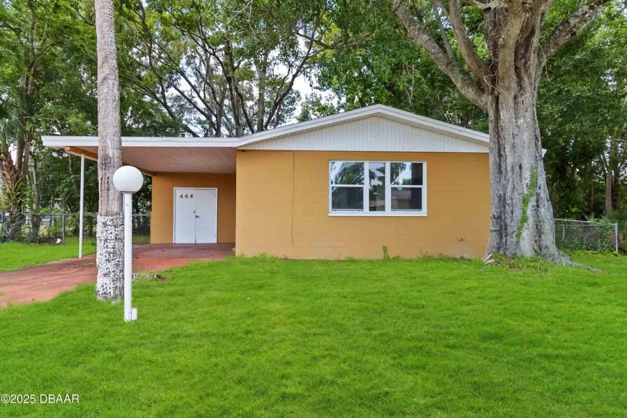 Recently updated with a new roof, new flooring, new windows, new doors, and fresh interior paint, this 3-bedroom, 1.5-bathroom home is ready for you. Inside, you'll find an open living and dining area, a kitchen with brand new appliances, and a separate laundry room with washer and dryer hookups. The spacious primary bedroom offers two closets, while the additional bedrooms provide flexibility. A full bathroom with a shower and a convenient half bath add everyday ease. Outside, enjoy a fenced backyard and a covered carport with one parking space. With all the major updates already done, this move-in ready home is the perfect opportunity to settle in and start making it your own-just minutes from shopping, the beach, and I-4/I-95 for easy access wherever you need to go.