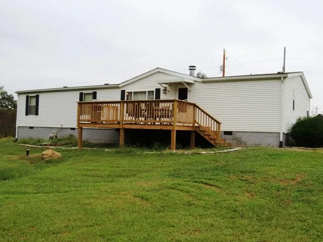 setting. Open floor plan. Spacious. Permanent foundation and new front deck. Living room with fireplace. Split bedroom floor plan. Bonus room for many uses with French doors. Large master suite with garden tub. White refrigerator to remain. Sq. ft. lot size est.