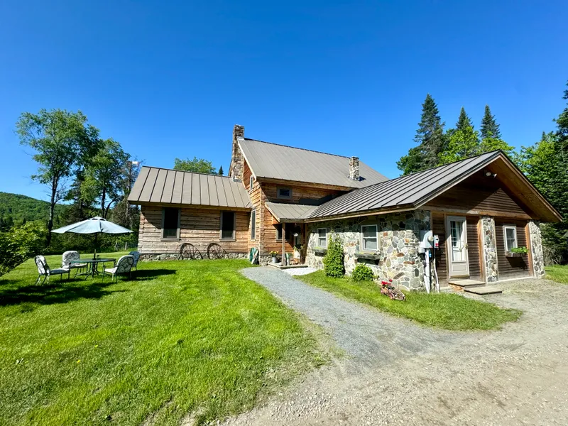 This uniquely-crafted dove-tail Log Home sitting on 7.8 Acres of land tucked off of Duck Pond Road is ready for its next chapter. The lovingly cared for home and grounds show beautifully what Vermont has to offer. A private driveway leads into the grounds, driving past mature apple trees and garden spaces on either side of the driveway. The dwelling's detached three car garage offers plenty of storage for vehicles, either daily driver or recreational, as well as work space if needed. The primary residence opens into a large dining room and sitting area on one side of the two-sided stone fireplace. There is an additional, cozier, sitting area on the opposite side of said fireplace, or you can enter into the kitchen which is a sight to behold. The custom cabinetry and the soapstone countertops and custom sink provide all the space you could need for entertaining or preparation. The first floor offers a bedroom and full bathroom, while the primary bedroom with ensuite bathroom, two additional bedrooms and another 3/4 bathroom are all on the second floor. The primary bedroom has a walk-in closet conveniently located across the hall from the full bathroom, which has a separate soaking tub and stall shower. This property also boasts a large attic that could be used as storage, or finished if need be. The walk-out basement also provides potential finishing space, or additional storage. This property also has a two bedroom, one bathroom, attached apartment, currently rented.