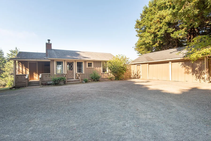 Charming 2 bed 1 bath home originally built in 1942 located on Gordon Lane, between Mendocino and Little River. Drive up the gently sloped, curved driveway through mature redwoods to this hilltop home. From the home you can see the open field(may be ideal for horses)where you can see glimpses of the blue Pacific. The small, cabin like home is sturdy & ready for your special touches. Living room enriched with old growth redwood, wood stove insert in a traditional brick fireplace, & an oil stove create a cozy environment. The house is sited to receive morning & afternoon sun. Out buildings include a 2 car garage with an attached shop & laundry room, approx. 12'X18' studio, and a small, rustic barn. All arranged in an arc to provide good backyard privacy. All buildings primarily redwood.