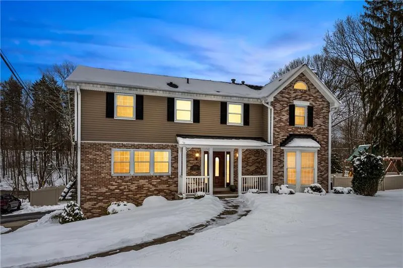 This five bedroom, three full, two half bath home in Hampton Township is sure to be love at first sight! From the minute you enter through the front door you will notice the charm and warmth it encompasses. Gorgeous new hardwood floors throughout most of the first and second levels, fresh paint throughout, and new windows with plantation shutters. The kitchen features all stainless appliances, double wall ovens, and a beautifully tiled gas range nook. The family room is lined with windows that overlook the wraparound porch and (newly) fenced-in yard. There is also a cozy den on the main level with a gas burning fireplace.The master suite is light and bright with double closets and shining crown molding. The second bedroom also has an adjoining full bath.All bathrooms have ceramic tile floors and new vanities. The oversized two-car garage that can accommodate two large vehicles. The property is spacious both inside and out and is perfect for entertaining with its superabundant driveway.