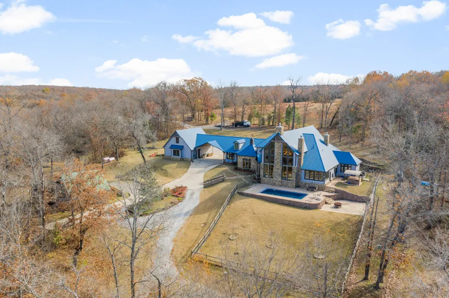 100 acres of hunting land with turkey, deer, bear, bobcats and more. Two beautiful homes plus a large metal shop on the property. The main home features two master suites, 2.5 bath and a large loft that can be transformed into another bedroom with bathroom if needed. Office, sunroom, dining room and porch with retractable screen. The home features high end finishes unlike any other home in the area. Granite throughout, built-ins, vaulted ceilings with wood beams, venetian blinds, wet bar, pool with retractable cover and cooler, hot tub, large fenced in dog run, mudroom with shower, two rooms with laundry hookups & much more.