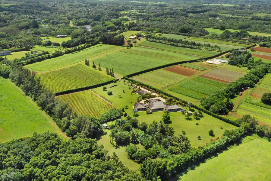 Kauai Organic Farms, one of the most profitable organic farms in Hawaii, located on a 44.63 acre parcel situated less than 1/2 mile from the Pacific Ocean and includes a stunning 6,817 square foot, custom 3 bed, 3.5 bath Hawaiian-Japanese style luxury home with incredible mountain views. The property consists of approximately 26 farmable acres. The primary crops have been organic turmeric, ginger and galangal. Additional crops include pineapple, lychee and assorted tropical fruit trees. Over 14.5 acres are currently planted with certified organic ginger, turmeric and galangal for the 2018/2019 harvest.