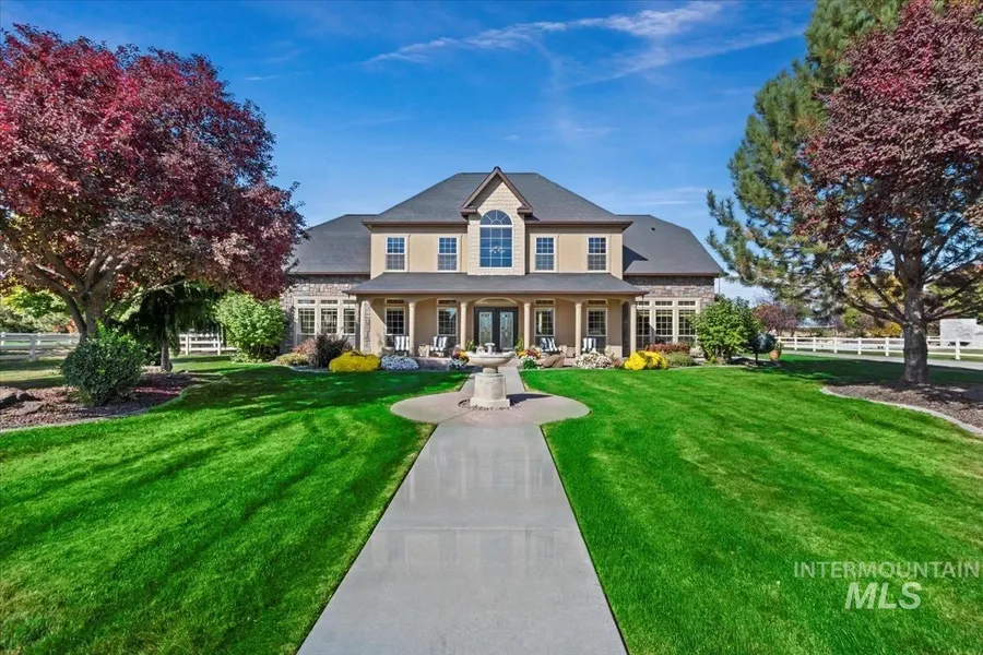 Gorgeous Bright & Airy Custom Home on 1 Acre off Columbia Rd on the edge of Meridian, Kuna and Nampa. 5 Beds, 4.5 Baths, Guest en-suite, Office, Exercise room, Bonus Room ++ this is the perfect home. Watch the Sunsets while relaxing by the Gas Firepit & Cascading Water Feature. Outdoor living & entertaining on the large Covered Patio, Salt-Water Pool (heated w/auto cover), TV & lawn areas for games. During the Winter, enjoy 2-gas fireplaces, a game of pool or Movie night in the large Bonus/Rec Room. Gourmet Kitchen with 5-burner gas range, double ovens, and walk-in pantry. Master retreat with walk-in closet, spa-like master bath, and access to the patio/pool. 38 X 37 RV Garage/Heated Shop, Car Lift plus outdoor RV parking. Pressurized irrigation. No back neighbors.