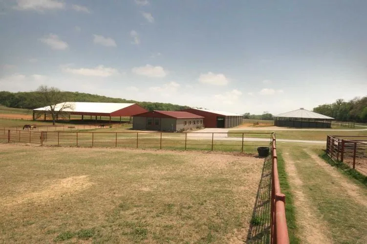 Located one-half mile north of Fm922 in the Mountain Springs area between Valley View and Tioga, this 45-acre horse facility features two barns, a covered arena and several living quarters in a desirable area of estates and horse ranches.