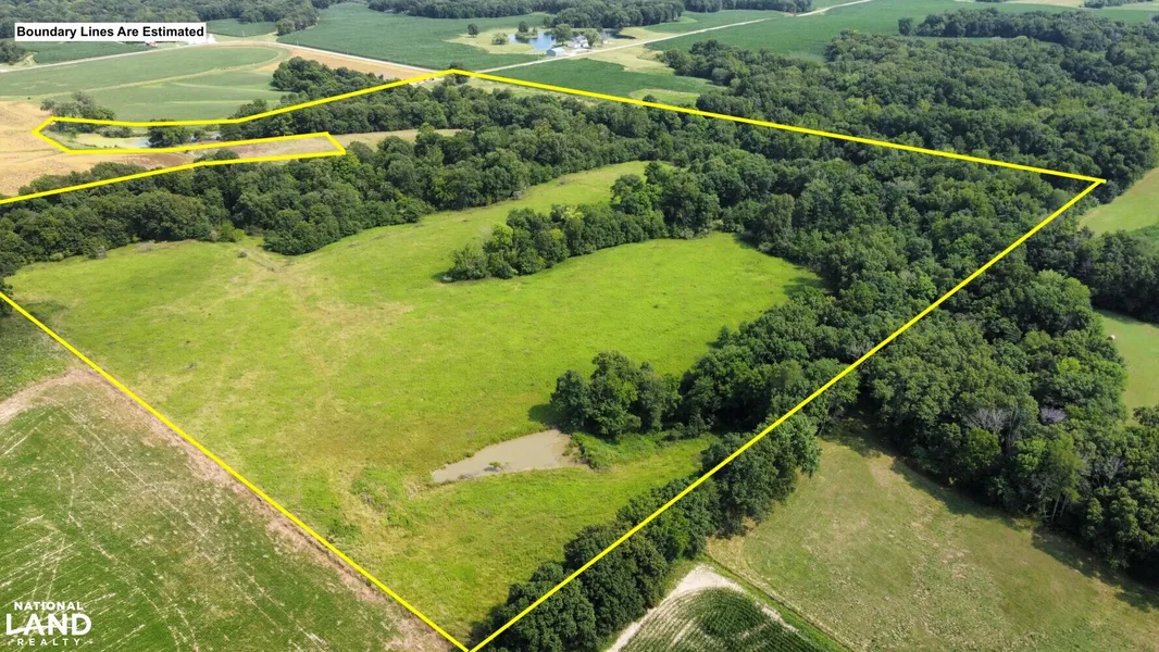Rare opportunity at a true combo farm. This one has it all: Build site (water & electric available), 3 ponds, ATV trails, dense bedding, and large fields that can and should be converted into tillable production, food plot acres, and/or native vegetation. This 45+ acres is being split from a larger farm and was surveyed to provide the ideal balance of access, enjoyment, and ability to be transformed into an excellent deer hunting property. Upon entering the property from the south, you will notice a large 1/2 acre building pad that was previously used for a cell tower. This pad will make an excellent build site and has electric and rural water along the road. A large creek bottom splits the property running north/south. A 1 +/- acre pond separates this property from the tillable land on the north & east side. The northwest portion of the property is currently in grass/hay production but could be converted into tillable land (8 +/- ac) for production, food plots, or native species.