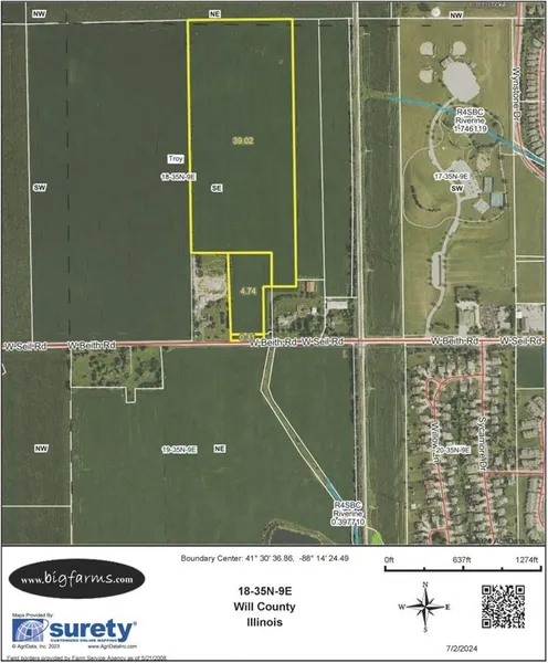 An approximate 45 acres of vacant farmland available now just outside the western city limits of Shorewood, IL, and just down the road from Four Seasons Park. With 44.07 tillable acres, a soil PI of 128.8, and with close access to highways like Route 52, I-80, and I-55. Local amenities include shopping, restaurants, recreational opportunities and excellent schools. Lake Michigan water will be available in 2027. This site has townhome or duplex home potential. Excellent location on Seil road across from Minooka Grade school owned land.
