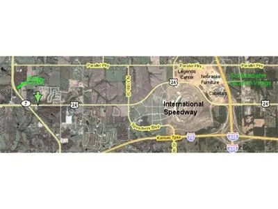 This property is at the northeast corner of the K-7 & State Avenue (US40-24 Highway) which is a west entrance to the International Speedway - Village West - Legends Retail Mega-Plex.