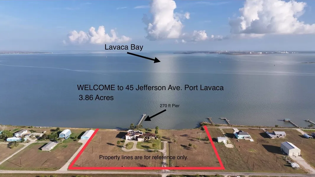 Luxurious Relaxing or Fishing Paradise has 3/3/3 home 20 feet above the shores of Lavaca Bay with infinity pool. Pier is 270 feet long and many, many fish have been caught from there. One doesn't have to fish to enjoy the ambiance of this amazing property. Designed by architect originally for himself. 24/7 Magnificent views of Lavaca Bay with sightings of dolphins, pelicans, seagulls, ibis and shrimp boats. Home has security system, Japanese soaking tub, crown molding, large pantry, Wet bar, high ceilings. large walk-in closet. Casita has full kitchen, bathroom and Murphy bed. Porch connecting main house to casita has motorized screens and storm shutters for all kinds of weather. Also, newly installed motorized storm shutters on each window and outside doors for severe weather. Home is "poured in place concrete" also called ICF construction. It has 3235 square feet of air conditioned space. One garage is oversized for RV or T-top boat. Property is 3.86 acres.