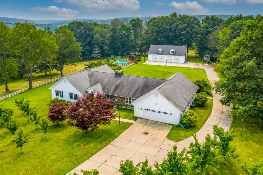Your own private sanctuary awaits you at this sprawling 4 bedroom/3 full bathroom Ranch on 14 country acres, with a large above ground pool, pond, meadows, separate 4 car 30X60 garage/barn with 2nd level, enclosed 2 stall run-in shed with hayloft and even a chicken coop! Pick your own fruit from the vast orchard of mostly Asian Pears, mature grapevines, cherry trees and one apple tree. Great property for horses or gardening & farming. Located in Morris in the southern part of Litchfield County, and at the end of a cul-de-sac of a country road. This 3,536 sf country home with CAIR offers generous-sized rooms in all rooms, a sunken formal living room with a faux fireplace opening & fieldstone surround, a family room with a fieldstone fireplace with a wood burning stove, large kitchen with dining area and SS appliances, formal dining room and huge recreation room. The barn-style 4 bay garage with 1/2 bath, has the potential for an in-law apartment on the 2nd level with it's own 2 bedroom septic system. Also has the potential of separating the property in 2 parts to create a building lot with it's own frontage on RT 109, which at one time were 2 separate lots. Morris residents enjoy using the Morris Town Beach at Bantam Lake, CT's largest natural lake. Only 10 minutes to the historic Litchfield Green, just minutes to all locations of White Memorial's 4,000 acres of hiking trails, and 2 hours to NYC. The property taxes reflect a discount due to the agricultural status.