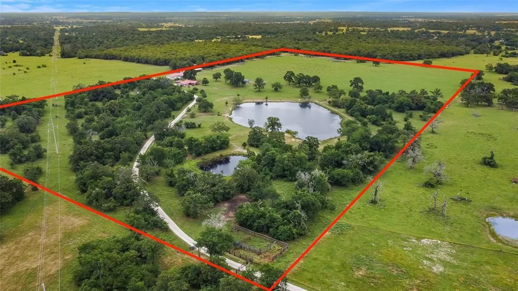 Breathtaking 45+ acres, gated entry includes cattle guards & huge canopies of mature oak trees abound. Property is fully fenced and cross fenced, with improved pastures for hay production & a 2 plus acre stocked fishing lake & 2 other ponds. Property has a Spacious 4 bedroom + study Ranch style home with picturesque views of stunning green pastures from every window. The heart of the house has a Gigantic family room, with a wall of windows bringing the outdoors in, boasting a gorgeous stone wall & hearth w/wood burning stove that is open to the kitchen with a huge breakfast bar, perfect for big family gatherings. Saltillo tile and wood flooring throughout for easy maintenance. Many outdoor porches & decks to choose from & 24x24 carport. Riding/calf roping arena is 260x50 w/turnout.30x40 shop, 40x56 Barn w/ 1/2 bath & kitchenette & 40x14 lighted porch, 50x20 RV cover w/ 50 amp. serv. Tack bldg. w/3 covered stalls & overhang,also a 15x8 covered dog kennel, Perfect Country retreat!!!