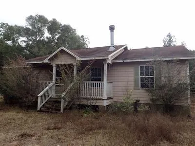 Property is located in a rural location. Home is situated at the end of a private street. Home is a 3 bedroom 2 bath split bedroom design home with indoor laundry room. Siding is lab sided masonite and roof is composite shingle. Home is built on a crawlspace and has a front porch landing and large wooden deck off the rear of the home. Resting on 1.77 acres, this home land is mostly cleared. There is a detached 1 car garage/storage building adjacent to the property. Home was built on 2003.