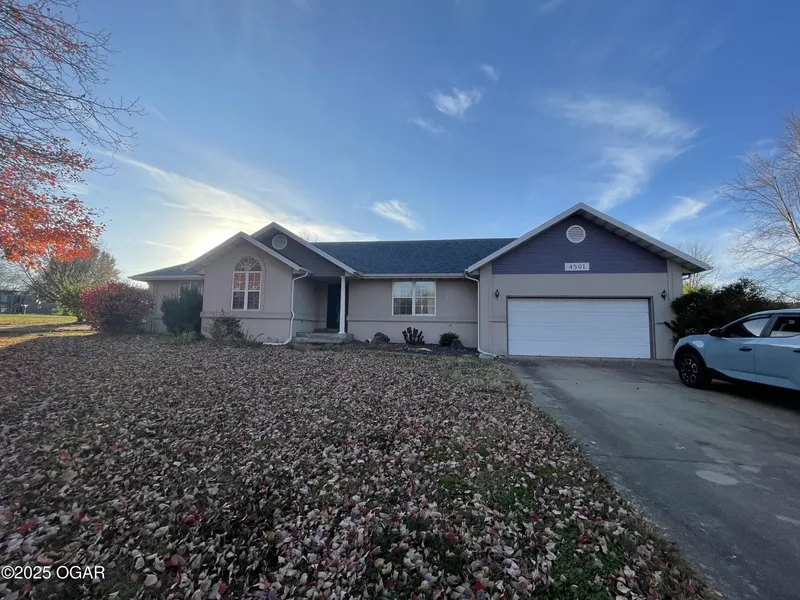 Located at 4501 N. 16th St., Ozark, Missouri, this inviting 3-bedroom, 2-bathroom home offers 2,209 square feet of comfortable living space on a generous .53-acre lot, complete with a 25x21 detached two-car garage. Step inside to a welcoming living room featuring vaulted ceilings and a cozy fireplace, creating the perfect space for relaxing or entertaining. The living area flows effortlessly into the kitchen, which offers granite countertops, an eat-at bar, and ample cabinetry for everyday convenience. Just off the kitchen, a large sunroom with multiple windows fills the home with natural light and provides a peaceful spot to unwind. The spacious primary suite features a tray ceiling, private ensuite bathroom, and a generous walk-in closet, while two additional bedrooms offer comfortable accommodations for family, guests, or a home office. Outside, the backyard invites you to create your own peaceful retreat with a tranquil water garden, ideal for enjoying quiet mornings or evening relaxation. The detached two-car garage provides excellent storage or workshop space and includes solar panels designed to help reduce electric costs.