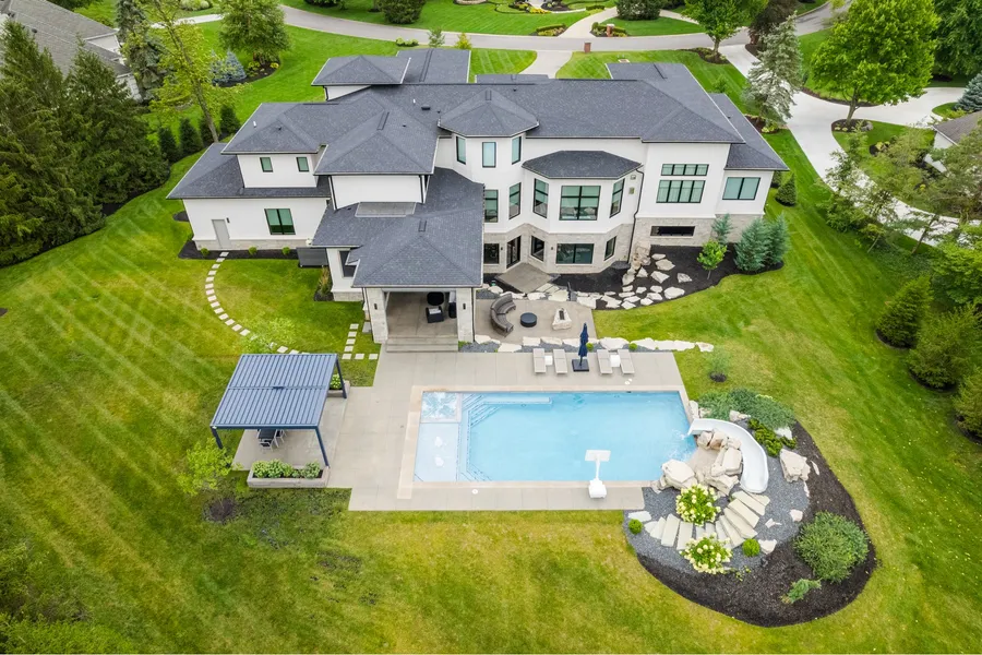 The most beautiful off water property ever presented to the Fisher's residential market. Designed by award winning Steve Goldberg and crafted by highly regarded Homes by Design, 451 Breakwater Drive is a newly finished stunning retreat for luxury living. This modern yet comfortable improvement is on point in fit and finish; a superior alternative to starting a new build. An open floor-plan oasis with soaring ceilings is flooded by bright light highlighting exquisite craftsmanship. High end tile and flooring throughout couples with custom cabinetry and built-ins. Beautifully crafted double island kitchen fitted with Miele appliances opens to a spacious office, beautiful dining room and modern great-room. A perfectly designed upper level features custom bedroom spaces and a spacious bunk room. The walkout lower level get-away features a true home theatre, large sport court, game room and more. This breath-taking exterior oasis boats stunning patio spaces both covered and open pairing with an oversized gunite pool featuring tranquil water feature and hot tub. The highest quality technology distinguishes this property; a one-of-a kind Indiana estate.