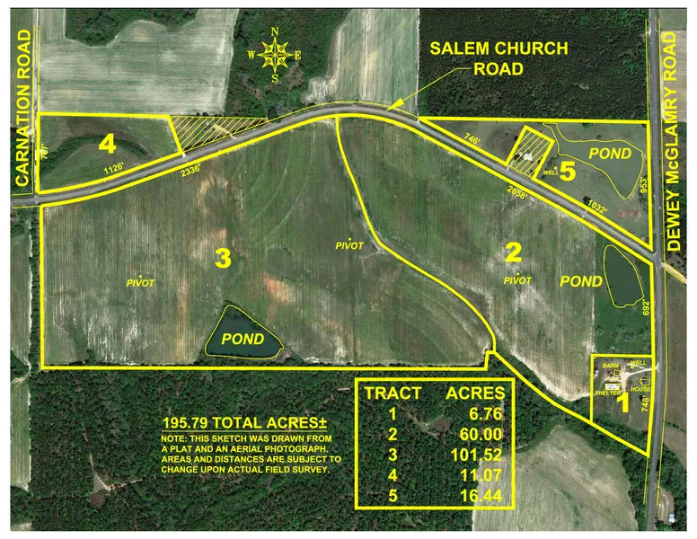Tracts 1-5: 195 Acres, Excellent Irrigatable Cropland Home, Shop & Pole Barn on Salem Church Road