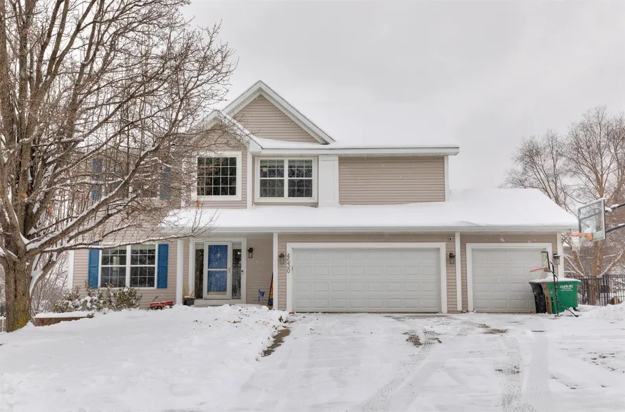 Coveted Copper Creek neighborhood with a great view of the lake and walking distance to the trails! Entering in, you'll find a two-story entry and 9' ceilings throughout the main floor. You are sure to enjoy beautiful hardwood floors and spacious rooms that allow for easy living and entertaining, too! The formal dining room is the perfect space for dining-an extra sitting room-office or toy room. Follow through to the kitchen with tons of space for cooking and baking, granite counters, peninsula for bar seating and all stainless steel appliances to stay! Eat-in area just off kitchen that passes through to the living room, too! The living room is spacious with huge windows to let in tons of light, has built-ins and a cozy gas fireplace. Access to the 3 car heated garage finish off the first floor! Upstairs, you'll find 3 spacious bedrooms centrally located around a full hall bathroom with 2nd floor laundry, along with the oversized primary bedroom with double doors, tray ceiling details, attached ensuite bathroom with double vanity, shower, jet tub and HUGE walk-in closet! The daylight lower level features a 2nd living space with wet bar and mini fridge, 3/4 bathroom and large storage room with built-in shelves. Outside you'll enjoy a large deck, fully fenced yard, and hot tub! So much to love in this home--newer furnace and central air conditioner (2021)--close to all of Pleasant Hill's amenities and easy access to I-235 to get anywhere else in the metro! Come see today!