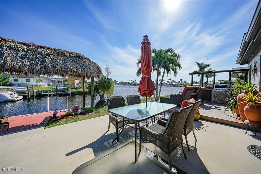 Enjoy true Florida waterfront living in this beautifully updated Gulf access canal home located just minutes from the Caloosahatchee River. This property offers quick boating access to open water and a serene setting to enjoy stunning sunrises, dolphins, and manatees right from your backyard. The home features 4 bedrooms, 2 bathrooms, a spacious family room, and an oversized kitchen with granite countertops and a glass fireplace. Perfect for entertaining, the outdoor area includes a Cabana Dock, outdoor kitchen, and a large covered lanai overlooking the canal. Recent upgrades include a new roof (2022), new A/C (2023), new laminate flooring throughout (2024), fresh interior paint (2023), and a hurricane roll-down shutter for added peace of mind. Lastly enjoy the on demand tankless water heater. Experience the best of boating, fishing, and waterfront lifestyle-all from your own backyard. Contact your agent today to schedule a private showing!