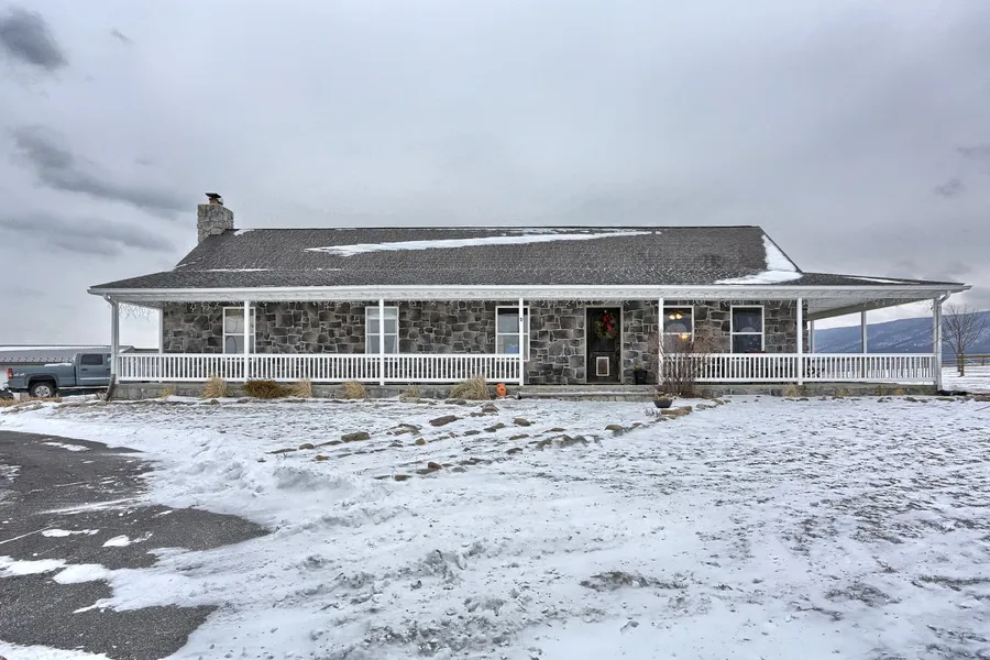 A view that will take your breath away! Welcome to this 16.61 acre horse farm that offers a 4 stall horse barn with water and electric, separate tack room and fenced in pastures. This property also has to offer a 2,296 sq.ft. stone ranch home with a large wrap around porch to enjoy the beautiful view. 5 bedroom, 2 bathroom home with open concept living, master bedroom with walk-in closet and full bathroom, stainless steel appliances, gas stove, breakfast bar, hardwood floors throughout, large walk up attic with possibilities for expansion or extra storage space, partially finished full basement and sunroom, newly paved driveway and large detached two car garage. Property located close to Colonel Denning State Park. Schedule a showing today- you dont want to miss out on this property.