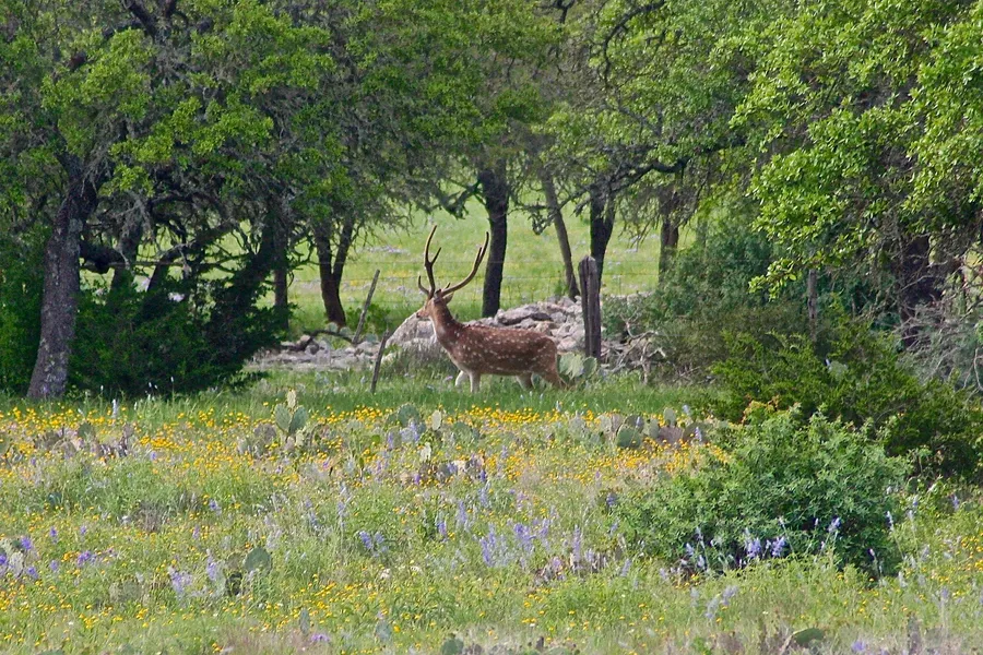 The low-fenced ranch has been rested and refocused on wildlife. Native game includes white-tail deer and turkey. Free-ranging exotics such as blackbuck antelope and axis deer come and go.