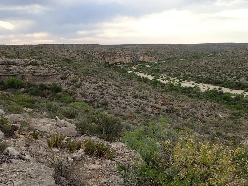 454.74 acres only 5 minutes off the pavement between Sanderson and Dryden, in Sierra Vista Ranch. BEAUTIFUL country, with mule deer, whitetail deer, aoudad sheep, blue quail, javelinas... The west/southwest boundary runs along the bottom of Sanderson Canyon, and there are several large header canyons in this property that feed into it, so there are several MILES of canyons in this property.