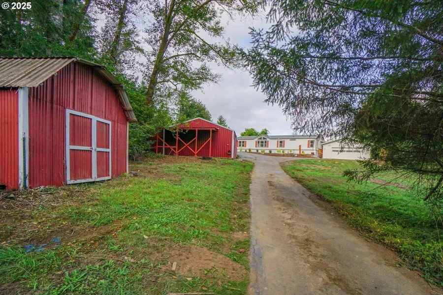 Discover this versatile multi family 5-acre property featuring a completely remodeled 1,700 sq. ft. manufactured home, originally purchased new in 1993 and placed on site. The home has been fully updated and is fully financeable, with a brand-new roof, vinyl windows, modern light fixtures, and fresh landscaping. Inside you'll find 3 bedrooms and 2 bathrooms, including a large primary suite with a walk-in closet, a double-sink vanity, and a walk-in shower. The kitchen has been fully upgraded with new stainless steel appliances, an electric stovetop, butcher block countertops, and a large separate pantry. Additional highlights include a separate laundry room and a bar area for entertaining. Enjoy the territorial and mountain views from the covered and uncovered deck. The property features central heating . The land offers incredible flexibility with multiple shops zoning for home business(Buyer due diligence) and RV accommodations: Two RV hookup spots with septic, power, and water Shop/well building with two-car garage, workbench, and trolley Large barn with walkable upstairs, concrete slab, and exterior crane - possible use as an additional structure (buyer to do due diligence) Private RV site with concrete pad septic ,water,electric and and space for a buildable ADU unit, located on the opposite end of the property for added privacy Several carports for extra storage The attached two-car garage offers a separate 15x24 back insulated and finished off room for potential for an ADU conversion (buyer to verify). This property combines privacy, scenic views, and a wide range of functional spaces, making it ideal for a variety of uses. Separate level road that runs the full length of the 5 acres with entrance on each end. (Possible big rig entrance and exit)Buyer to perform all due diligence regarding intended use and permitting. Please have your agent print out pdf in Documents for map before showing there is a lot to see.