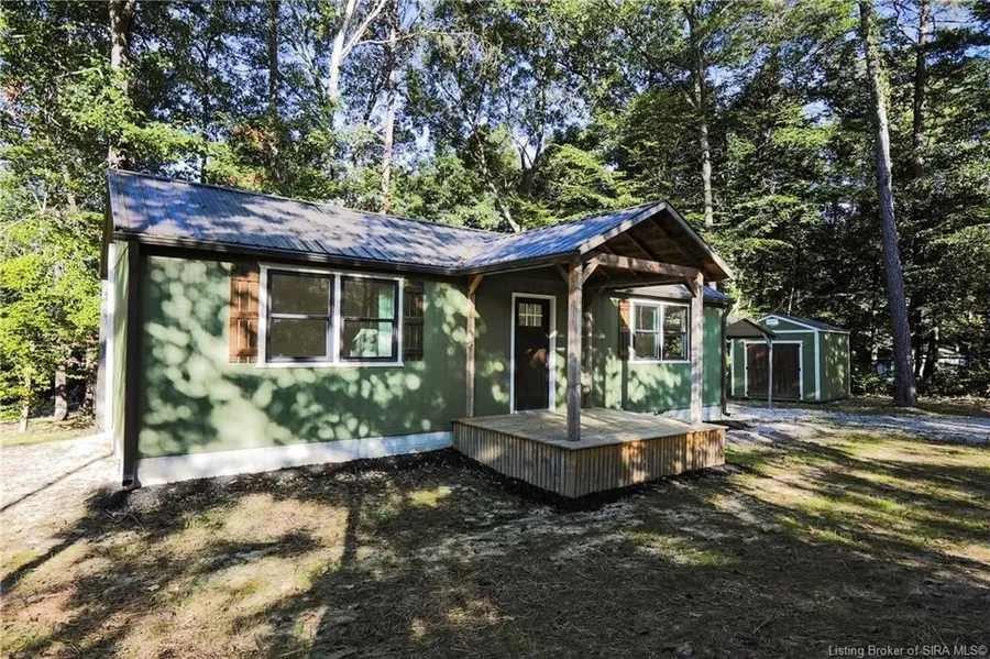 Nestled on nearly an acre of private, wooded land, this newly constructed cottage offers the perfect blend of modern comforts and rustic charm. A welcoming walkway leads to the covered front porch, setting the tone for this enchanting retreat. Step inside to an open floor plan where the kitchen and living area flow seamlessly together, filled with natural light. The kitchen shines with gleaming white craftsman-style cabinetry, butcher block countertops, and a full appliance package including oven range, microwave, dishwasher, and refrigerator—everything you need to settle right in. The bedroom is a true haven, featuring vaulted beam ceilings that mirror the character of the living space, ample closet space, and a lofted storage area for added convenience. The bathroom offers thoughtful touches like linen and supply cubbies, and even includes a washer and dryer. Start your mornings with coffee on the rear deck, overlooking the tranquil wooded backdrop. Outside, you’ll also find a newly built 10x10 shed that complements the home’s architecture, along with covered carport parking. Whether you’re searching for a cozy primary residence, a peaceful weekend retreat, or a charming Airbnb-style investment, this property checks all the boxes. Don’t miss your chance to make this fabulous cottage your own!