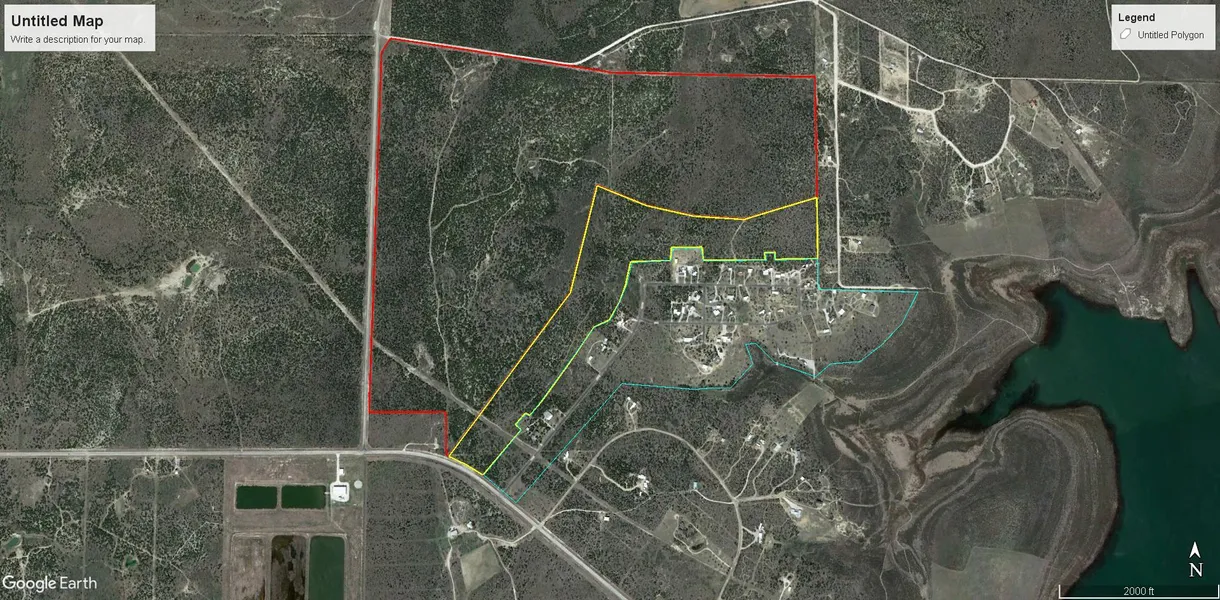 455+/- Acres of gently rolling Mesquite/Cedar pasture; Beautiful 3 bedroom, 3 & 1/2 bath home; 32 residential lots and park acreage; Located on Lake Ivie in Concho County. This recreational opportunity offers hunting and other outdoor activities plus a fabulous retreat home and acreage on Lake Ivie to relax in. The 2560 square foot house was built in 2003 and has an open concept with large rooms, fireplace, Saltillo tile floors, granite tile counters, plantation shutters on all west exposed windows, and ample storage throughout. The east exposure of the house opens to a 1600 square foot covered back porch with access from two bedrooms, living room and rear entry hallway. You will be able to enjoy shaded viewing vistas while entertaining family and friends. the house sits on 2 lots and an additional 10+/- acres and has a 45x50 detached workshop/barn with 3 bay doors, room for an RV, family vehicles and ATV's. The pasture acreage is within a mile from the homesite with paved road access. The majority of the acreage is fenced and cross-fenced with net and barbed wire, a water well and ground pond. There are 32 residential lots available for resale that convey with the property. The development has paved roads and other amenities for home/lot owners in Mesquite Acres.