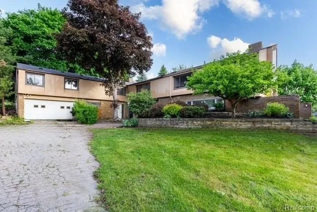 Welcome to 4554 Mystic Hills Circle, a truly exceptional residence inspired by the design legacy of Frank Lloyd Wright. This 4,700+ square foot home, crafted by architect Lawrence Brinks—an apprentice and mentee of Wright—offers architectural artistry at every turn. Nestled on 2.5 beautifully landscaped acres, the home is accessed by a tree-lined drive that sets the tone for the serene surroundings. Inside, custom angles and vaulted wood ceilings create dramatic spaces, complemented by rich-colored concrete block flooring and textured brick walls in the expansive living room, dining area, and kitchen. Large, thoughtfully placed windows flood each room with natural light and offer sweeping views of the property. A unique catwalk overlooks the grand living space, adding to the home’s one-of-a-kind character.