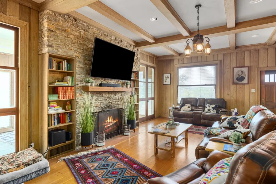 The ranch features well-maintained structures including three historic houses updated with modern appliances. The recently remodeled 3BR/2BA, 1,500 sq/ft main house features three patio areas, one of which is enclosed. Additionally, there is a remodeled 2BR/2BA, 1,000 sq/ft guest house with a wood-burning fireplace. The third house is a 1BR/1BA, 150 sq/ft bunkhouse with a new deck and roof. The main and guest houses are designed by renowned architect Ralph Haywood Cameron. He is known for works such as the Neo-Gothic Medical Arts Building, Grace Lutheran Church, and the Art Deco-influenced Frost Brothers Store Building. Camerons plans are archived at the University of Texas, adding cultural heritage and provenance to the property.