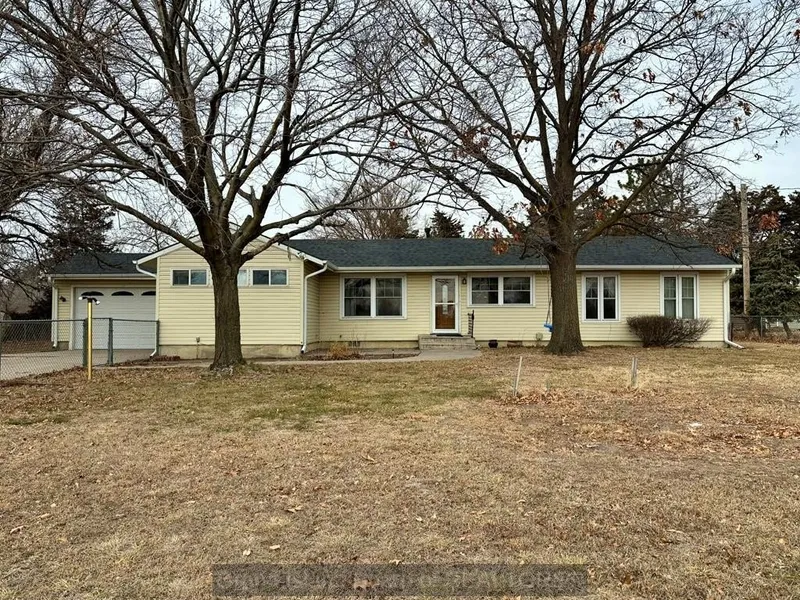 Home with a spacious lot on the outskirts of town. The layout features three bedrooms and two bathrooms. Oversized two-car garage offers generous storage space for vehicles or hobbies. Full unfinished basement provides an array of possibilities for future customization. Recent upgrades include a new roof and gutters completed in 2024 along with new laminate flooring in the dining room and master bedroom. Home operates on well water and septic.