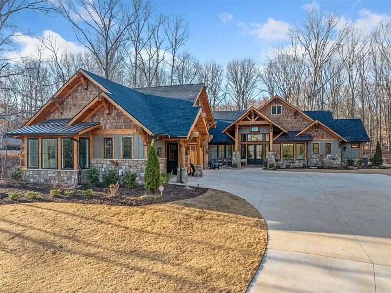 Inspired by the gorgeous homes of Napa Valley, this custom-built residence showcases the finest materials and radiates warmth, nature, and sophistication, complemented by all the modern amenities you desire. Nestled on a private 1.4-acre cul-de-sac lot backing up to a sprawling 50-acre estate of rolling hills, streams, and beautiful hardwoods, this property offers both tranquility and elegance. The home's timeless Ranch-style design, with an upstairs loft and guest suite, features clean lines, a spacious open floor plan, and large windows that flood every room with natural light. Seamless indoor-outdoor living is enhanced by a striking exterior that combines pre-treated cedar shake siding, hand-picked cedar porch ceilings and soffits, and carefully selected Tennessee Field Stone. Gas lanterns add a touch of charm, while the luxury landscape package includes Spruce trees, Magnolias, Arborvitaes, mountain boulders, Empire Zoysia premium sod, and a 9-zone Rain Bird irrigation system. The serene Courtyard Zen Space with a fountain, an 8-ft, two-tier decorative landscape wall with low-voltage lighting designed for a future pool, and stunning nightscape lighting further elevate the outdoor ambiance. Expansive Andersen maintenance-free windows, including a 16-foot folding Outswing Door, create a seamless connection between the great room and the covered outdoor entertainment area. The main level provides an open yet private layout, featuring a well-appointed owner's suite and two secondary ensuites situated on the opposite side. At the heart of the home is the stunning Great Room, with a cathedral ceiling adorned in hand-picked Douglas Fir tongue-and-groove planks and beams. A floor-to-ceiling Tennessee Field Stone fireplace, complete with a hearth and mantle crafted from 1800s vintage barn wood beams, serves as a captivating centerpiece. Custom 10-foot white oak built-ins flank the fireplace, accented with elegant London pulls from Plank Hardware. The dreamy, functional kitchen overlooks the Great Room and boasts a 10-foot oversized island with Taj Mahal Quartzite counters and backsplashes. Custom-made, inset, soft-close maple cabinetry by Shoal Creek Custom Cabinetry is paired with Plank Hardware London fixtures. Waterstone Faucets, custom-made to order, add an extra layer of luxury. Entertaining is effortless with two oversized farmhouse sinks, two dishwashers, and commercial-grade KitchenAid appliances, including a built-in ice maker and wine cooler. A walk-in pantry with additional custom cabinetry completes the space. Throughout the home, you'll find 7-inch wide-plank European White Oak engineered hardwood flooring. Window treatments include custom blackout shades in the bedrooms and luxurious 12-foot decorative curtains by Millie's Draperies in the dining and great room areas. The laundry room and mudroom are wrapped in genuine soapstone, featuring built-in cabinetry and lockers. Plumbing fixtures are commercial-grade by Delta, with custom mirrors and shower glass crafted by Echols Glass. Additional unique features include a pocket office with built-ins, a beautiful music room or den, and built-in custom closets in the owner's suite. A 19-speaker premium sound system delivers immersive audio throughout the interior and exterior. The covered back patio, with a dramatic oversized fieldstone fireplace, offers the perfect outdoor retreat. Upstairs, the loft area includes a media or playroom with a built-in wet bar and wine cooler, alongside an oversized guest suite. The modern custom stair railing adds to the home's sleek architectural lines. The oversized garage offers a separate door for discreet storage of garbage cans and other items. Additionally, an electric-powered niche provides the opportunity to create a workout space or spa area. This meticulously designed home perfectly balances luxurious finishes with practical living, making it an exceptional retreat for both relaxation and entertainment.