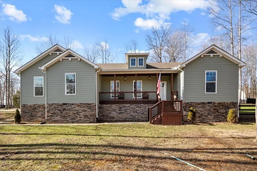 Stunning Custom-Built Craftsman in Wildwood Estates (2021). This beautifully designed home offers 3 main-floor bedrooms + a flex room with closet on a 1.08-acre lot with mature trees. The exterior showcases Hardie board siding with stone accents, a rocking chair front porch, and a screened-in deck overlooking the level, fenced backyard with a grilling patio. Inside, enjoy solid strand bamboo flooring, a cathedral-ceiling great room, and a stacked stone gas log fireplace with built-ins. The chef s kitchen boasts handmade cabinetry, granite countertops, stainless appliances, a 6-burner Zline gas range, double convection ovens, and a farmhouse sink. Retreat to the spa-like primary suite, featuring a custom-upgraded closet and a luxurious en-suite bath. Additional highlights include a walk-in pantry, laundry room with folding table, Pella double-hung tilt-out windows, an encapsulated crawlspace, tankless water heater and high-speed internet. The oversized 26x24 insulated garage includes a concrete driveway and extra parking pad. 1-year home warranty included! Sellers have relocated and are motivated. Show and make an offer!